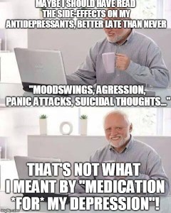 Can the manufacturers of anti-depressants get this shit sorted out? I never took drugs in the 90’s, so it’s all new to me and I don’t like it.