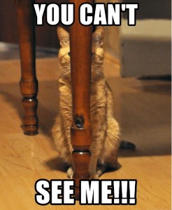 Why am I hiding under the round formed dining table in the room that was B’s bedroom? What am I even doing inside? How can they not see me?