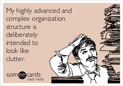 There is still great satisfaction for seeing an area clear of clutter or mess, it just happens gradually and no one gets to judge me on the process.