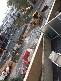 Friday night, the tram works began out the front of my apartment complex. I did get a 15 second audio sample of what I referred to as the “Soundtrack of my lockdown!” But didn’t save it. (Don’t even start me on that monumental fail!) Here are some photos instead.
