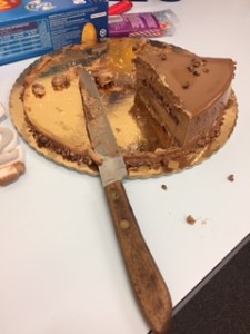 I digress, Tuesday, I provided the catering for an event for BIM the self-advocacy group I’m a part of. Basically, did the hunter/gathering, bought the cards, got everyone to write in them. Might get a little career being the buyer for people seeking cool birthday cards. Got an amazing cake for our lovely admin’s birthday! Here is a photo I got before it was almost gone! (#: Another reason Hellonwheels cannot do Insta)