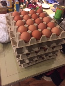A carer started buying me eggs, I would get a tray of thirty farm fresh eggs for $14.00, then I would give a dozen of them to my masseuse as I don’t otherwise pay her.