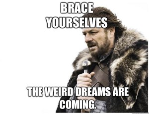 I had a dream yesterday; well I dream a lot. But mostly I have weird dreams where 3 or 4 crazy things are smashed into.