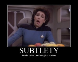 See? Subtle! (bitchy, sure) but subtle. And not every bit of commentary is for public consumption.