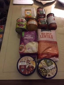 Meanwhile, had a scooter adventure yesterday to my local supermarket. This was my haul.