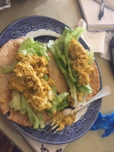 This was Monday’s lunch at home. The quintessential curried boiled egg with lettuce but on pocket bread. Soooo good.