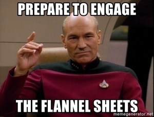 Early day’s I gave up my flannelette sheets, I think the first winter. HARSH. But necessary as I refused to give up my flannel PJ’s because when I rollover it’s like Velcro. The top sheet would get stuck to my PJ’s and covers would just go with me and a cool breeze would go down my back.