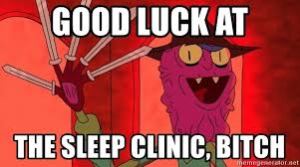 So, today I thought I’d do the FU (follow up) on my sleep clinic experience. Hilarious.