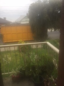 So, yeah. There was an auction across the road 3 months ago. It was a typical 70’s wog BV (that’s Brick Veneer for people who didn’t grow up with a carpenter as a dad, a grandfather and several others) it sold for practically 1.1 million. Two mornings ago, they started ripping it down. They are fast! And at one point, the earth moved! I wondered if I should huddle in a doorway or the bath. FYI; we don’t get earthquakes or tornado’s in OZ. If that’s your thing, come on down! And today I opened my front door to see this!