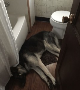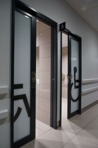 Removed my cuff and collar, my bag, walking stick, and hoodi top. I know, over sharing and obviously my pants, to use the facilities, to do what I was there to for. I heard an older lady’s voice! “Here! Come in here!” and the door opened. Like I had not locked it. Now, I had hung my bag on the door handle which would not interfere with the lock, I might have thought could be seen through the frosting. Should someone bother to look. At least I was not mid-poo or mid-wipe. I had just managed to get a few single ply tissue squares from the selfish T.P. Dispenser. More importantly, the door remained open in this awkward unnecessary social INTERACTION.