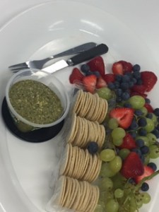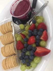What? You can’t imagine I can multi-task one-handed? Have you met me? My names Helen! And today’s lunch is…………….some healthy fruit, beetroot dip & crackers.